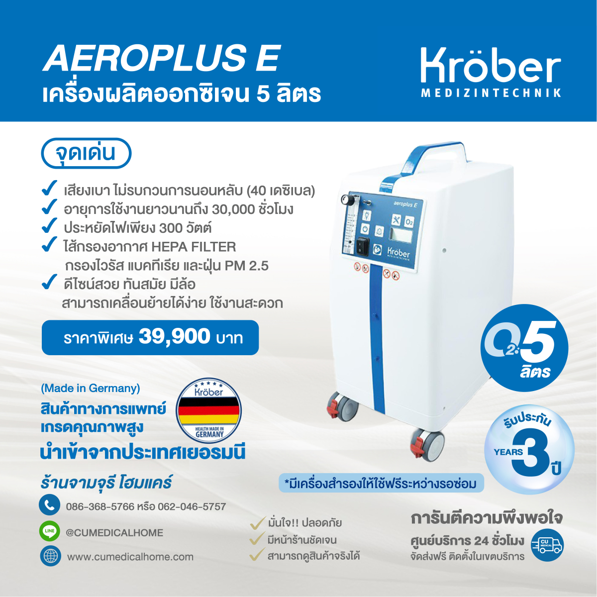 เครื่องผลิตออกซิเจน ขนาด 5 ลิตร (รุ่นเสียงเบา) สินค้าคุณภาพสูง นำเข้าจากเยอรมัน Krober Aeroplus E