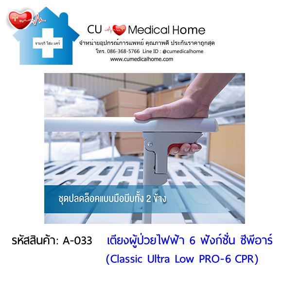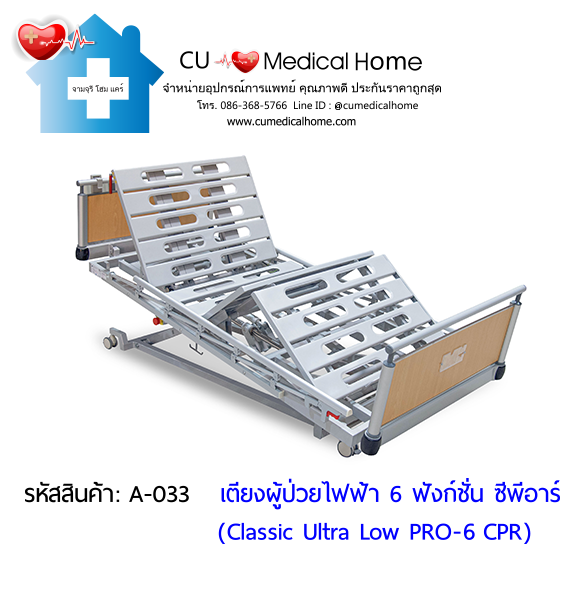 เตียงผู้ป่วยไฟฟ้า 6 ฟังก์ชั่น รุ่นปรับเตี้ยพิเศษ (Classic Ultra-Low PRO-6 CPR) ป้องกันอุบัติเหตุจากการตกเตียง