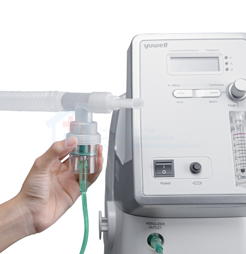 - ตัวเครื่องมาพร้อมกับฟังก์ชั่นพ่นยา หรือวาล์วช่องพ่นยาแยกออกจากช่องจ่ายออกซิเจน ซึ่งสามารถต่อชุดพ่นละอองยาได้โดยให้อัตราการพ่นละอองยาออกมาไม่ต่ำกว่า 0.15 มิลลิลิตร/นาที