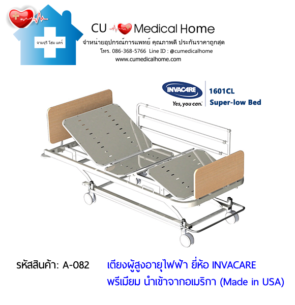 - เตียงผู้สูงอายุไฟฟ้า ยี่ห้อ Invacare รุ่น Super-Low ใช้อำนวยความสะดวกในการดูแลผู้ป่วย ผู้สูงอายุ คนชรา หรือผู้สูงอายุที่มีปัญหานอนติดเตียง ผู้ที่นอนพักฟื้นร่างกายอยู่ที่บ้าน เตียงปรับระดับไฟฟ้ารุ่นนี้จะช่วยให้พยาบาลผู้ดูแลผู้ป่วยทำงานได้อย่างสะดวกสบาย ช่วยผ่อนแรงในการพยาบาลดูแลมากยิ่งขึ้น